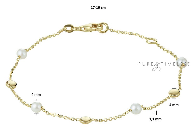 Gouden armband met parel 17 - 19 cm