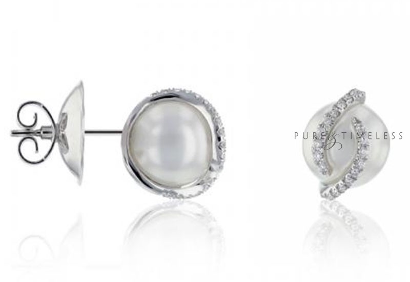 Op de parels vindt u 0.16 crt briljant geslepen diamantjes, gezet in een fantasie vorm die over de parels ligt. De oorstekers zijn van 18 karaat witgoud. De pousette vlinders, dat zijn de achterkantjes van de oorstekers, zijn extra groot zodat de oorbellen mooi blijven zitten.